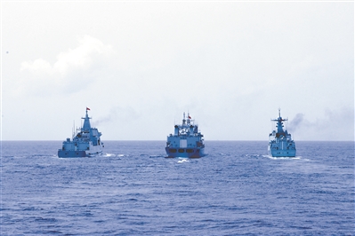4月上旬,海军某护卫舰支队开展海上综合补给训练。