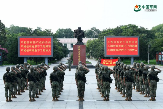 “杨根思连”官兵在老连长雕像前喊响“三个不相信”英雄宣言。季鹏 摄