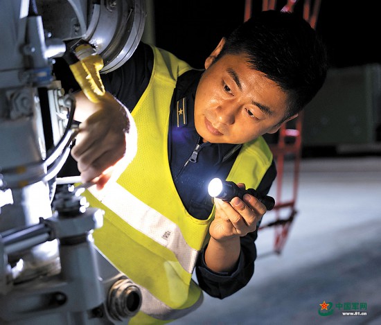 机务人员检查战机。