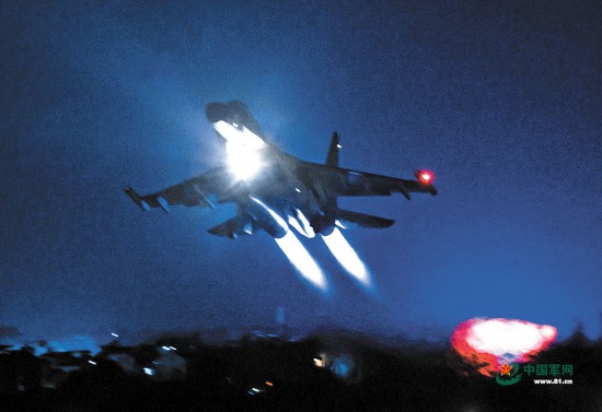 夜幕下,战机加力升空。