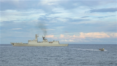 近日,海军某支队开展训练。图为舰艇吊放小艇转运人员。张伟峰摄