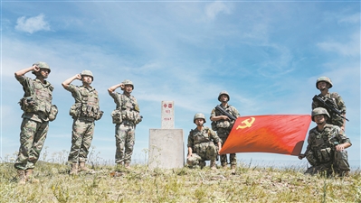 “七一”前夕,新疆军区某边防团官兵结合巡逻,在界碑前重温入党誓词。