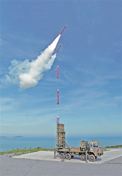 韩国“天弓”-2防空系统发射车发射导弹瞬间。
