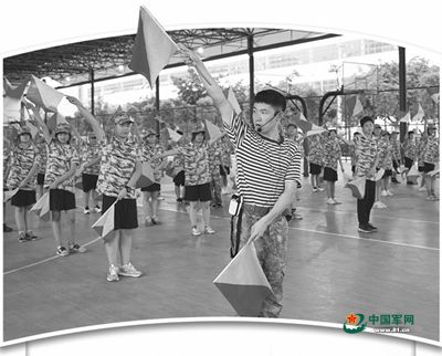 有的在凸显海军特色上下功夫。第10批军训团在训练中加入海军旗语项目,在初一学生中组建一支动作整齐、富于节奏感的旗语队伍。