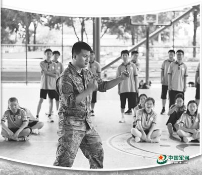 带训教官演示军体拳。甘智聪 摄