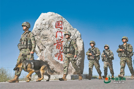 霍尔果斯边防连国门前哨班官兵在巡逻中。刘华全 摄