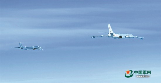 中俄空军轰炸机编队飞越白令海相关空域。吴岳鹏 摄