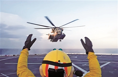 美军“大规模演习-2024”期间,舰上人员指挥直升机着舰。