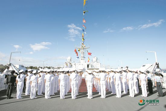 和平方舟医院船举行升旗仪式庆祝建军97周年
