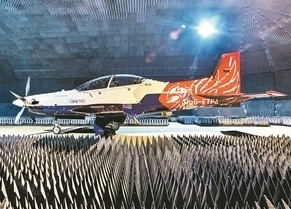 一架PC-21教练机在英国凯奈蒂克公司建造的“静音机库”内进行测试。(资料图)
