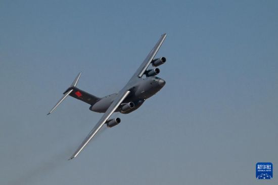 9月3日,在埃及阿拉曼开幕的首届埃及航展上,中国空军运-20进行飞行展示。新华社发(周雪峰 摄)