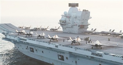 英海军“伊丽莎白女王”号航母上搭载的F-35B战斗机。