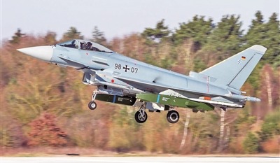 一架德国“台风”战斗机携带两枚“金牛座”巡航导弹。
