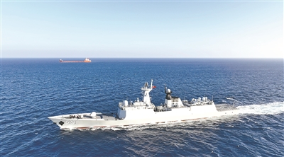 日前,中国海军第47批护航编队在亚丁湾海域完成第1661批护航任务。图为编队红河舰为“振华35”号货轮护航。 范 正摄