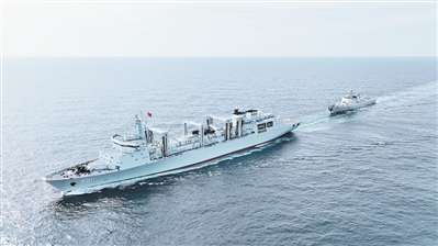 近日,海军某支队与友邻单位携手开展多科目训练。图为海上纵向补给。本报特约通讯员 徐涛涛摄