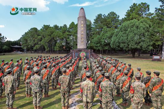 瑞金市人武部组织预定新兵在叶坪革命旧址红军烈士纪念塔开展现地教学。葛振奇摄