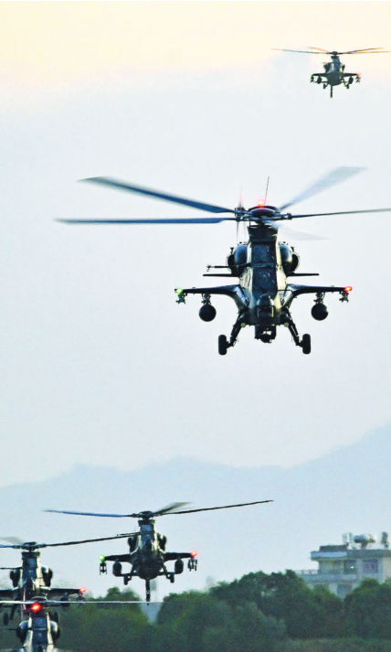 秋日,陆军某旅开展编队飞行训练。 周泽来摄