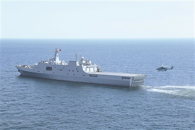 近日,海军某支队开展海上训练。图为舰机协同训练。翟 涛摄