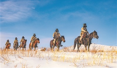隆冬时节,陆军某边防连组织官兵巡逻。 范佳怡摄
