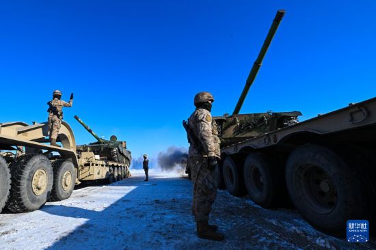 1月4日,联勤保障部队某汽车运输旅和陆军某部联合开展重装运输车装载训练。