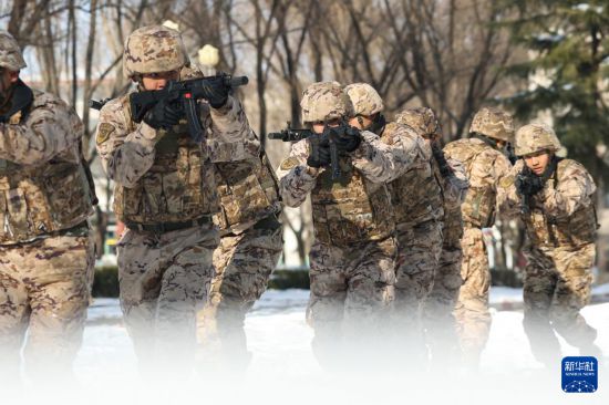 1月4日,武警第一机动总队某支队组织官兵开展战术训练。