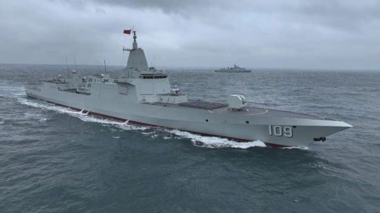 近日,055型驱逐舰家族又添新成员,东莞舰(舷号109)、安庆舰(舷号110)同步亮相,两艘舰艇分别在东海某海域开展了首次海上训练。